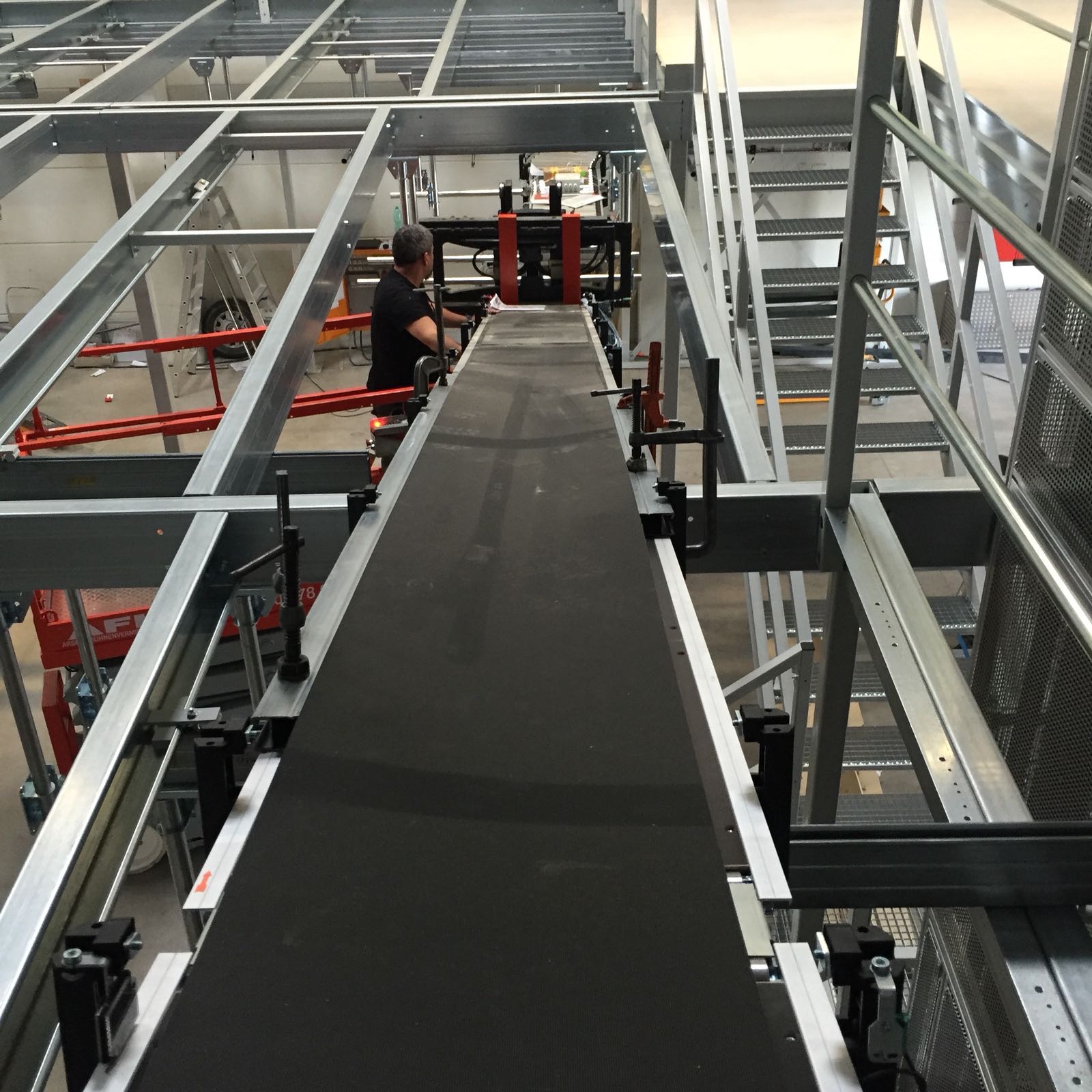 Mechanical and electrical installation of an automated roller bed conveyor system in Leipzig, feeding picking stations and lift storage within a high-throughput logistics operation.